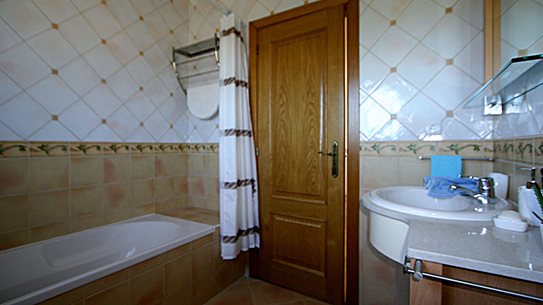 - 1 suite avec double lit «queen size» de 2x80x200, grand dressing, grande salle d’eau privative avec baignoire, lavabo , WC et bidet. Le balcon est orienté plein sud avec vue mer et piscine.