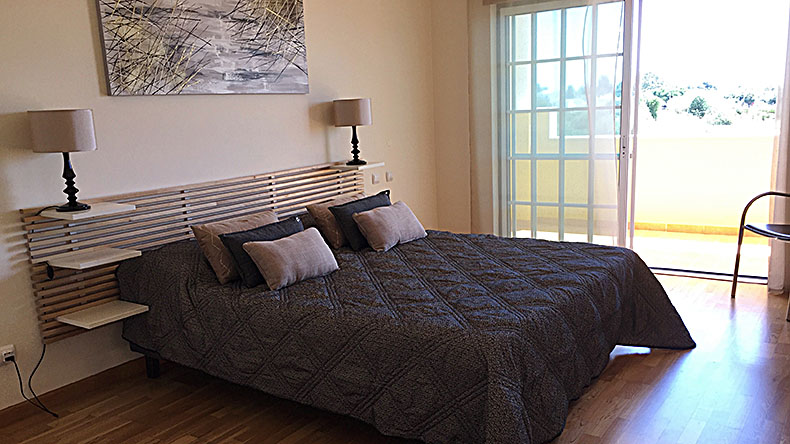 1 suite avec lits «queen size» de 160x200, grand dressing et salle de bain privative, douche, lavabo et WC. Le balcon est orienté sud-ouest avec vue mer et piscine.